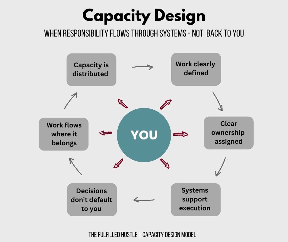 Capacity Design is the intentional redesign of how responsibility flows through work and life so that everything doesn’t depend on one person to keep it moving.